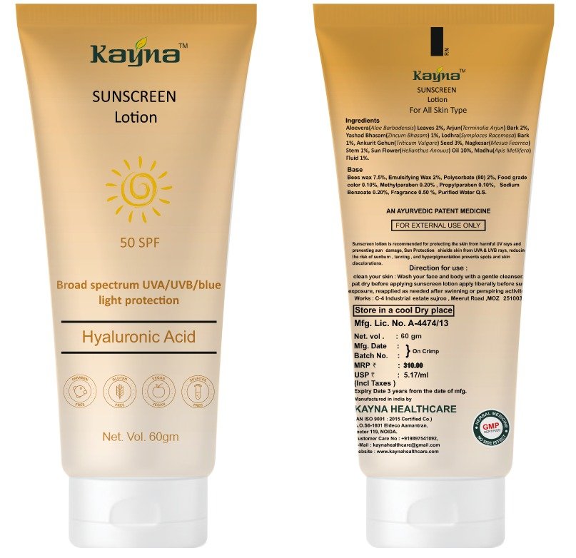 Kayna Sunscreen Lotion SPF 50 Kayna Sunscreen offers br...